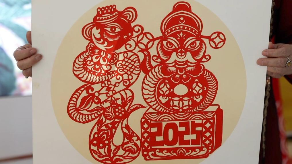 左手持紅紙,右手握剪刀,65歲的伏兆娥時(shí)而微笑、時(shí)而凝神,沉浸在創(chuàng)作之中。“送福蛇”,許仙、白娘子,“蛇盤兔”……伏兆娥制作了多幅造型各異的剪紙作品慶祝新春佳節(jié)的到來(lái)。