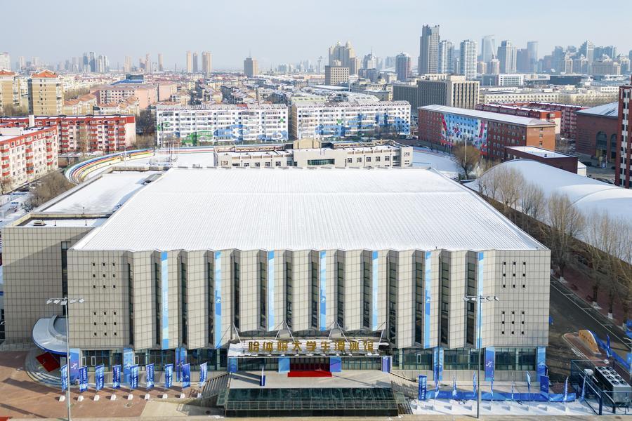 這是1月21日拍攝的哈爾濱市冰球館(男子冰球比賽場館)(無人機照片)。新華社記者 王松 攝