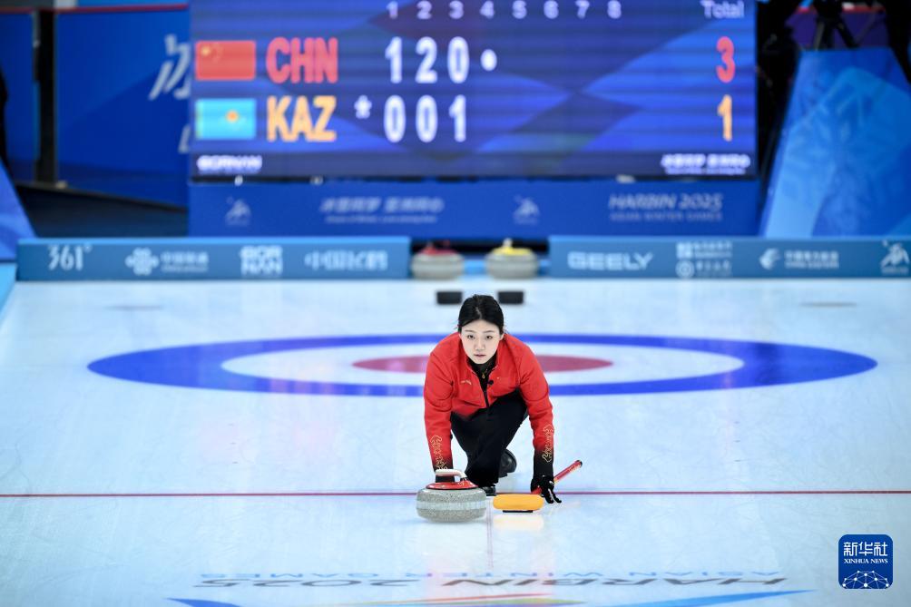 當(dāng)日,在哈爾濱舉行的第九屆亞冬會(huì)冰壺混雙循環(huán)賽B組第1輪比賽中,中國(guó)隊(duì)11比5戰(zhàn)勝哈薩克斯坦隊(duì)。