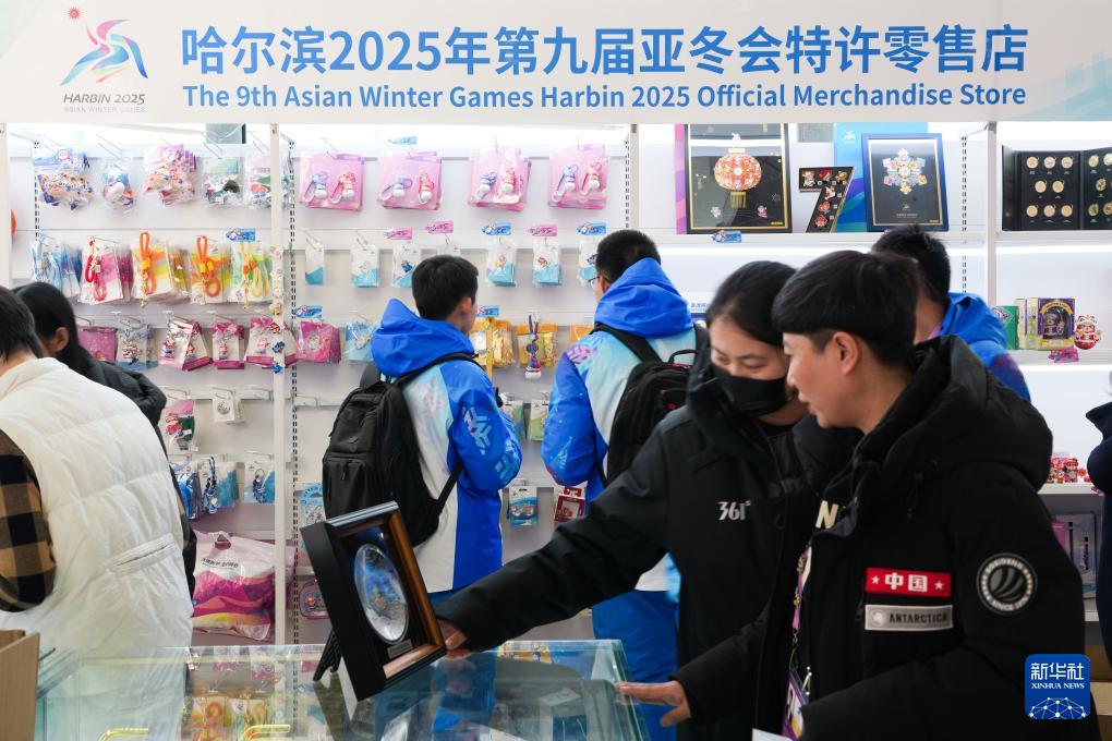 2月5日,人們?cè)谥餍侣勚行膬?nèi)的亞冬會(huì)特許商品零售店選購(gòu)紀(jì)念品。