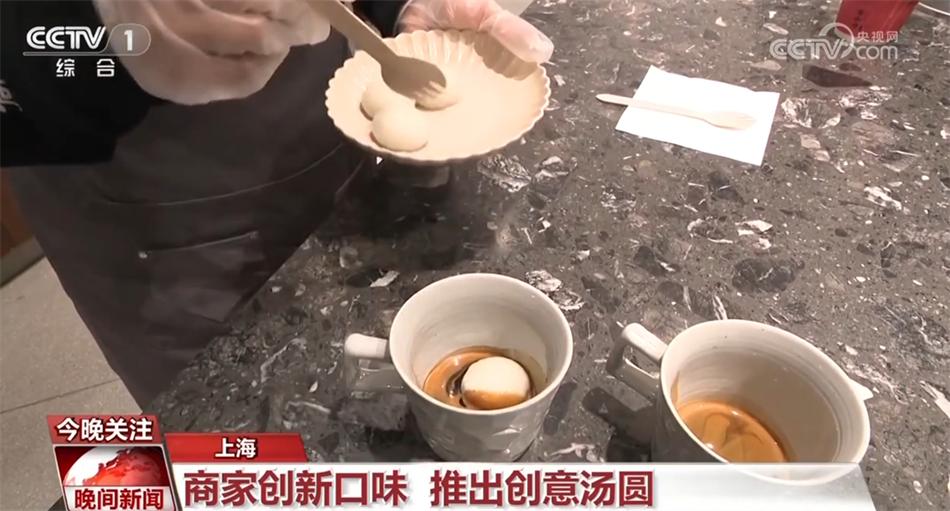 今年,不少商家還追求“新奇”與“融合”。在上海淮海中路的這家咖啡店,推出的一款“美式湯圓”這幾天受到不少顧客的關(guān)注。所謂“美式湯圓”,就是湯圓泡在了咖啡里,顧客點單后,后廚工作人員開始現(xiàn)煮芝麻湯圓,前臺咖啡師則同步萃取濃縮咖啡。待湯圓煮好以后,以濃縮咖啡液作底,放入軟糯的白湯圓,再撒上“靈魂輔料”桂花碎,一杯充滿混搭氣息的“美式湯圓”就做好了。