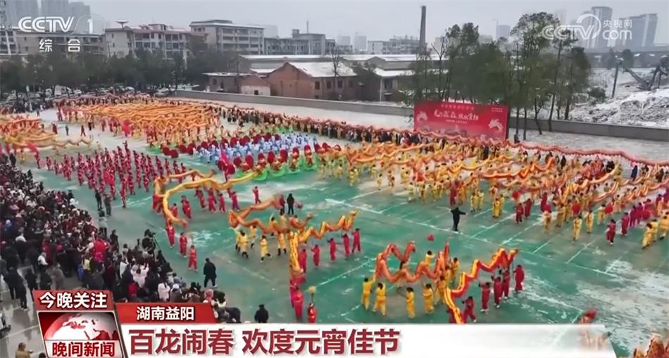 在湖南益陽,元宵節(jié)當(dāng)天,100條彩龍翻騰飛舞,不斷變換出各種造型,直接將節(jié)日的氛圍“拉滿”。伴著彩龍,各種地方戲曲精彩上演,市民群眾零距離感受傳統(tǒng)民俗的魅力。