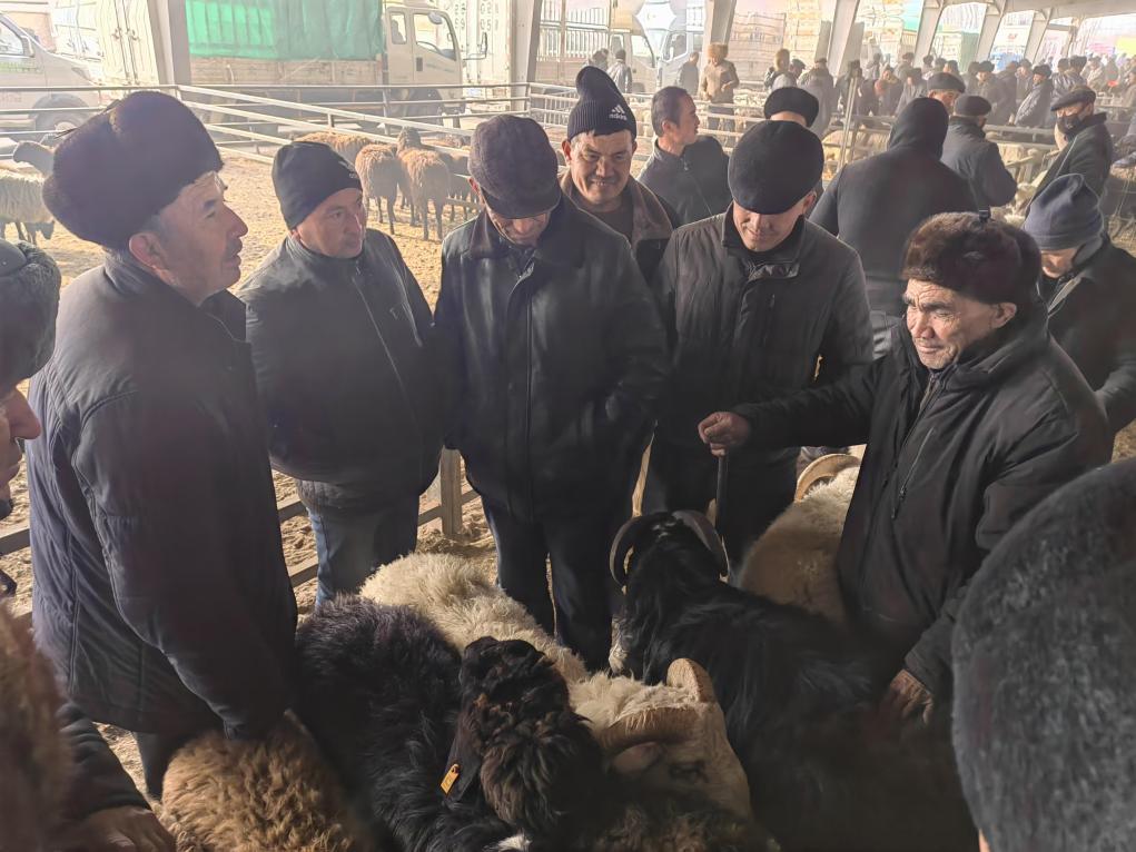 1月5日,在新疆喀什市牛羊大巴扎,買賣雙方正在討價(jià)還價(jià)。新華社記者蔡國棟 攝