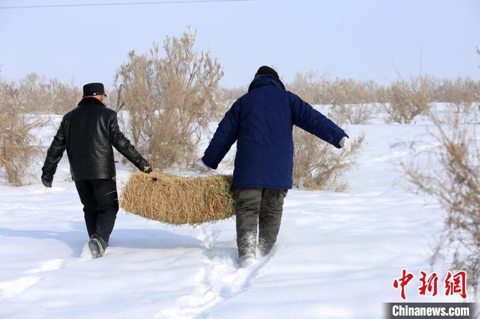 “雪太厚了,這些小家伙們都快找不到吃的了?!蓖鮽ミ呎f邊將沉甸甸的草料扛在肩上。50多歲的王偉雖已兩鬢斑白,但仍步履矯健。