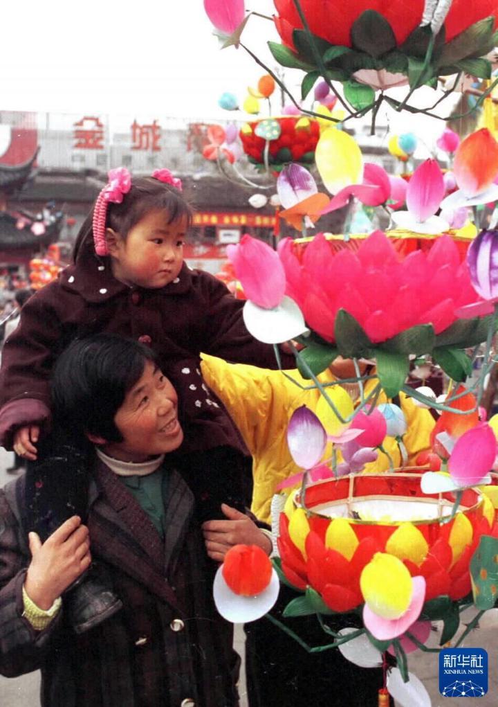 2000年元宵節(jié)前,人們在江蘇南京夫子廟廣場買花燈。 新華社記者 徐澎 攝