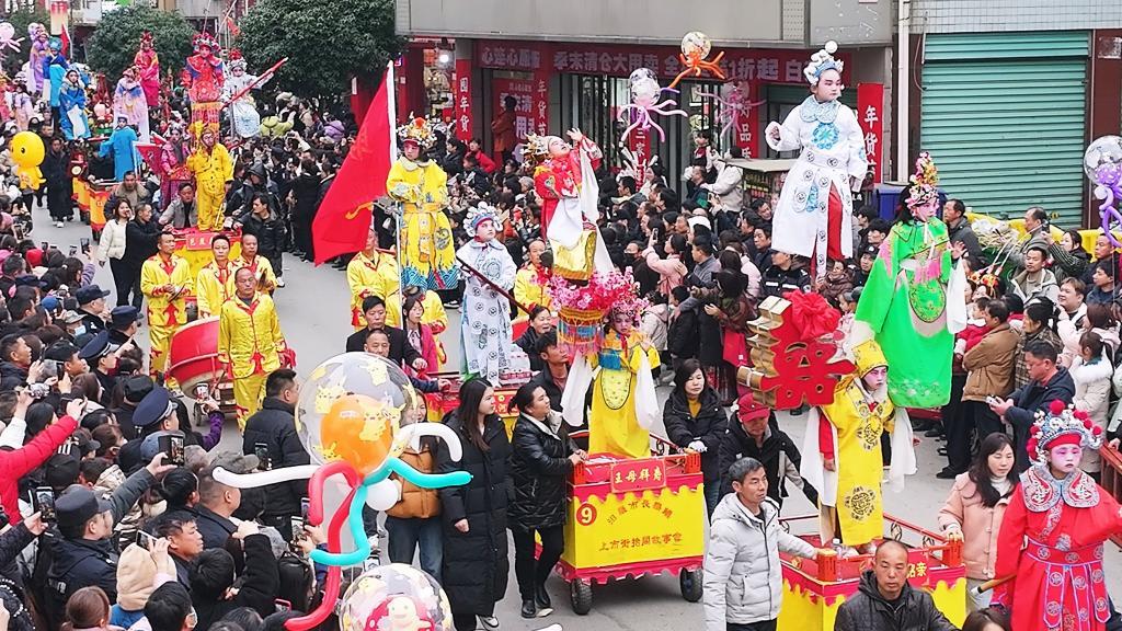 湖南省汨羅市長(zhǎng)樂鎮(zhèn)“長(zhǎng)樂抬閣故事會(huì)”民俗活動(dòng)現(xiàn)場(chǎng)。(胡清 攝)