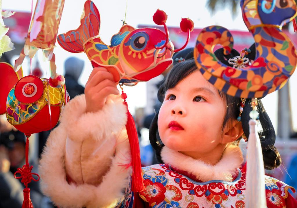 2月9日,一名小朋友在浙江省寧波市寧??h強(qiáng)蛟鎮(zhèn)峽山村迎元宵節(jié)活動(dòng)中專(zhuān)注賞燈。新華社發(fā)(胡學(xué)軍攝)