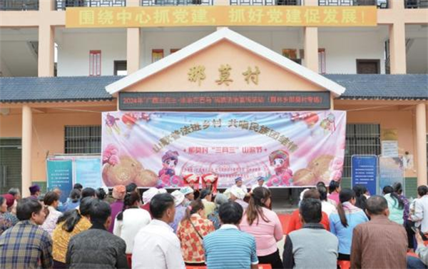 2024年4月9日,以“山歌普法進鄉(xiāng)村·共唱民族團結情”為主題的普法山歌會在河池市巴馬瑤族自治縣百林鄉(xiāng)那莫村舉行
