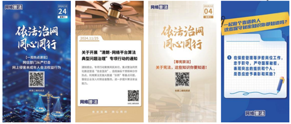 “網(wǎng)絡(luò)普法”公眾號(hào)在實(shí)際工作中,充分考慮權(quán)威性、新聞性、專業(yè)性、趣味性的有機(jī)結(jié)合,積極尋求“普網(wǎng)絡(luò)法”和“用網(wǎng)絡(luò)普法”的立體統(tǒng)一,構(gòu)建了具有網(wǎng)信特色的法治宣傳陣地。