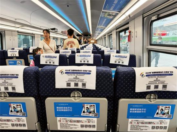一是打造主題車廂。聚焦“一帶一路”網(wǎng)絡(luò)空間安全和沿線群眾在網(wǎng)絡(luò)法治領(lǐng)域的熱點(diǎn)問(wèn)題,根據(jù)復(fù)興號(hào)CR200J的車型特點(diǎn),設(shè)置“中國(guó)網(wǎng)絡(luò)法治三十年”“網(wǎng)絡(luò)安全”“數(shù)據(jù)安全”“未成年人網(wǎng)絡(luò)保護(hù)”“數(shù)據(jù)出境之旅”“反網(wǎng)暴凈網(wǎng)行動(dòng)”“個(gè)人信息守護(hù)”以及“網(wǎng)絡(luò)空間命運(yùn)共同體”8節(jié)主題車廂,讓車廂內(nèi)部成為網(wǎng)絡(luò)普法移動(dòng)走廊,突出展示新時(shí)代中國(guó)網(wǎng)絡(luò)法治建設(shè)理念、實(shí)踐成效及交流成果。二是豐富法治內(nèi)容。充分利用車廂內(nèi)鏡框海報(bào)、玻璃貼、小桌板貼、行李架彩貼、頭枕片、LED顯示屏等豐富多彩的載體,以口訣、順口溜、圖片、漫畫、金句等形式展示網(wǎng)絡(luò)法律知識(shí),打造輕松愉快的移動(dòng)式學(xué)法場(chǎng)景,讓乘客們?cè)谙硎苁孢m旅途的同時(shí),也能輕松學(xué)習(xí)到實(shí)用的法律知識(shí),共推出普法圖片50張,漫畫20幅,金句48條。三是互動(dòng)掃碼學(xué)法。在每個(gè)座位的頭枕片上印制“法潤(rùn)彩云南你我共參與”網(wǎng)絡(luò)法治競(jìng)賽二維碼,方便群眾可隨時(shí)掃碼開展趣味學(xué)法,參與便捷、實(shí)用性強(qiáng),為移動(dòng)化碎片式學(xué)法提供新途徑,吸引246.5萬(wàn)人次參與答題,訪問(wèn)量累計(jì)超645.8萬(wàn)次。