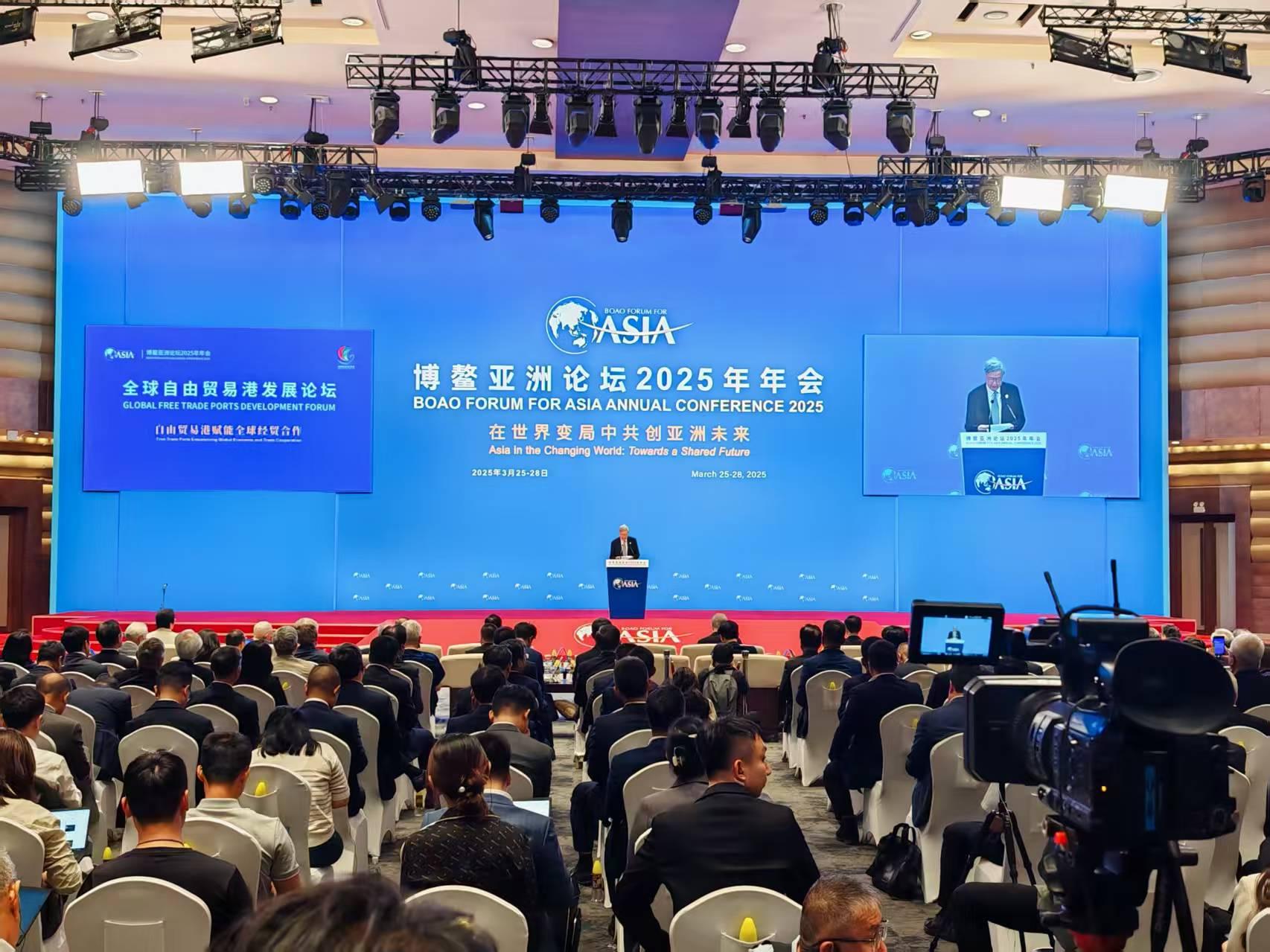 3月25日下午,博鰲亞洲論壇2025年年會(huì)全球自由貿(mào)易港發(fā)展論壇開幕。博鰲亞洲論壇理事長、聯(lián)合國第八任秘書長潘基文,博鰲亞洲論壇副理事長、中方首席代表周小川,吉爾吉斯共和國前總理阿克爾別克·扎帕羅夫,中國香港特別行政區(qū)行政長官李家超致辭,中國海南省省長劉小明發(fā)表主旨演講。