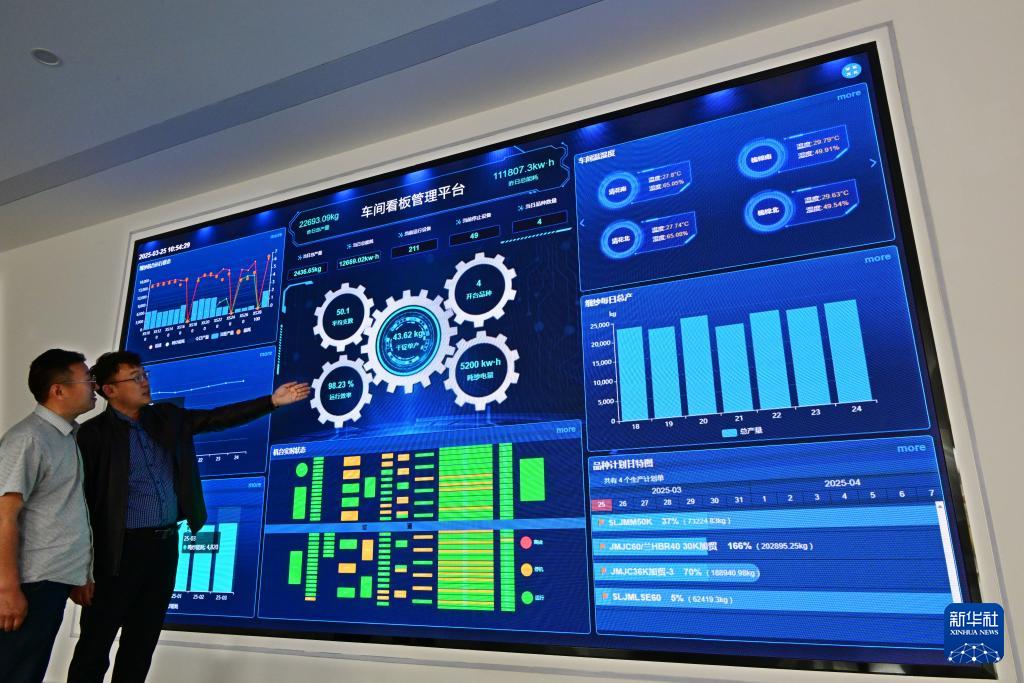 ??在即墨區(qū)龍山街道一家服裝企業(yè)的車間看板管理平臺,工作人員在實時查看相關數(shù)據(jù)(3月25日攝)。