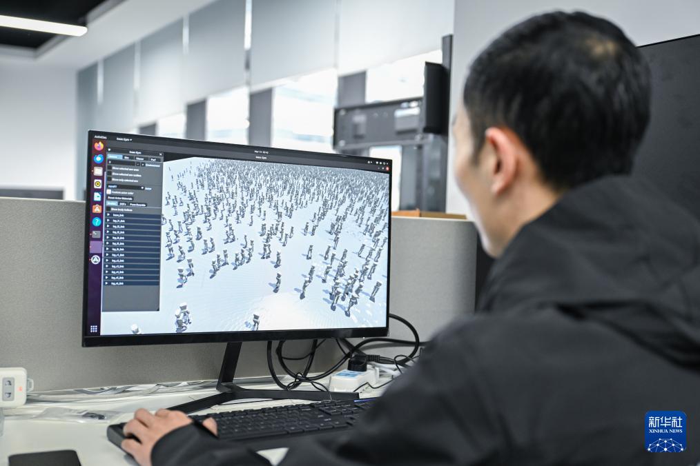 ??3月13日,工程師付龍?jiān)隍?yàn)證機(jī)器人動(dòng)作模型訓(xùn)練效果。