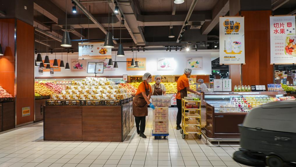 在河南許昌的胖東來生活廣場店內(nèi),店員正在做當天開業(yè)前的準備工作。新華社記者 劉振坤 攝