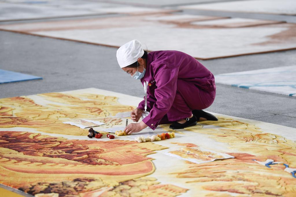 在青海圣源地毯集團有限公司生產(chǎn)車間內(nèi),工人在制作藏毯。新華社記者 張龍 攝