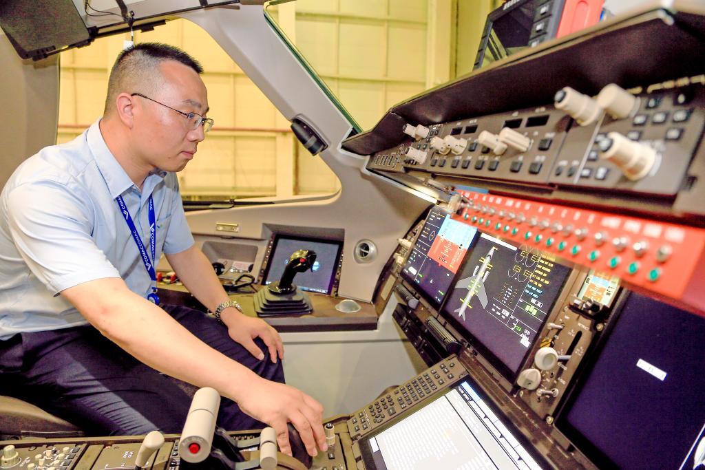 C919取證期間,劉偉開展上電前的調(diào)試,確保試驗順利進行。(中國商飛公司供圖)