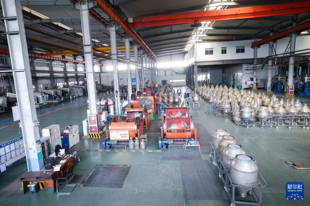 4月9日,在位于慈溪的國(guó)家專(zhuān)精特新“小巨人”企業(yè)寧波金輪磁材技術(shù)有限公司數(shù)字化車(chē)間內(nèi),工人在生產(chǎn)線(xiàn)上生產(chǎn)永磁材料。