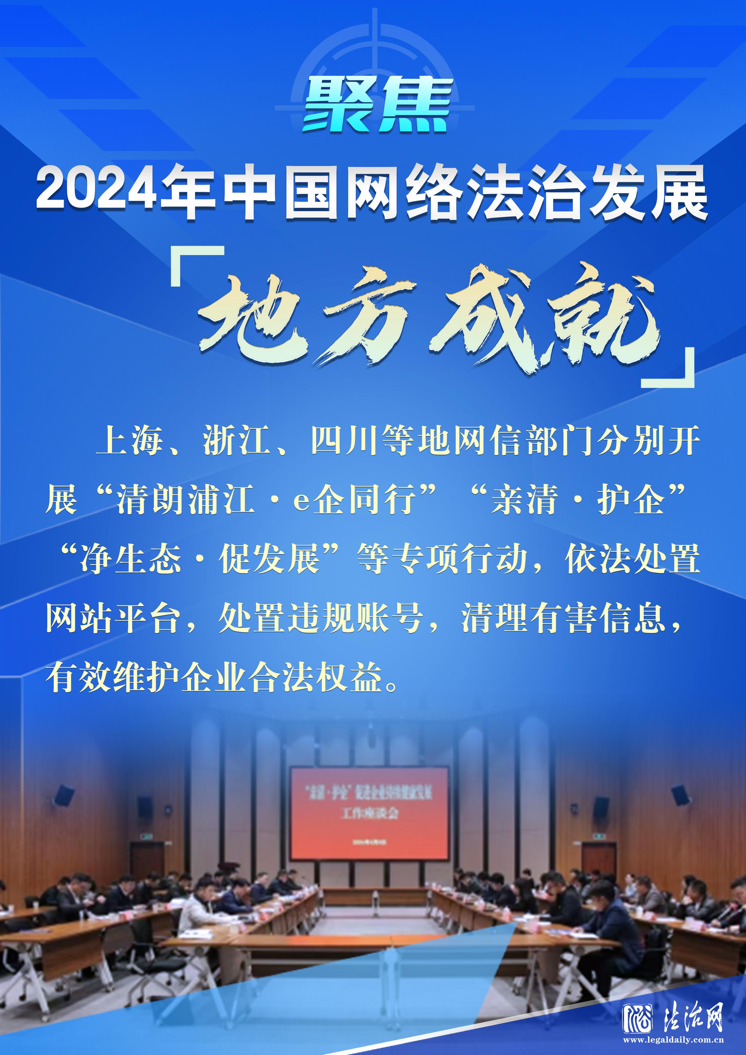 4月27日,國(guó)家互聯(lián)網(wǎng)信息辦公室發(fā)布《中國(guó)網(wǎng)絡(luò)法治發(fā)展報(bào)告(2024年)》。這是首部國(guó)家部門(mén)層面發(fā)布的網(wǎng)絡(luò)法治綜合性年度報(bào)告,既是《中國(guó)網(wǎng)絡(luò)法治三十年》報(bào)告的續(xù)篇,也是中國(guó)網(wǎng)絡(luò)法治發(fā)展年度報(bào)告的開(kāi)篇。讓我們用一組海報(bào)帶你看我國(guó)網(wǎng)絡(luò)法治建設(shè)這一年的地方成就,感受全國(guó)各地網(wǎng)絡(luò)法治建設(shè)邁出的堅(jiān)實(shí)步伐。