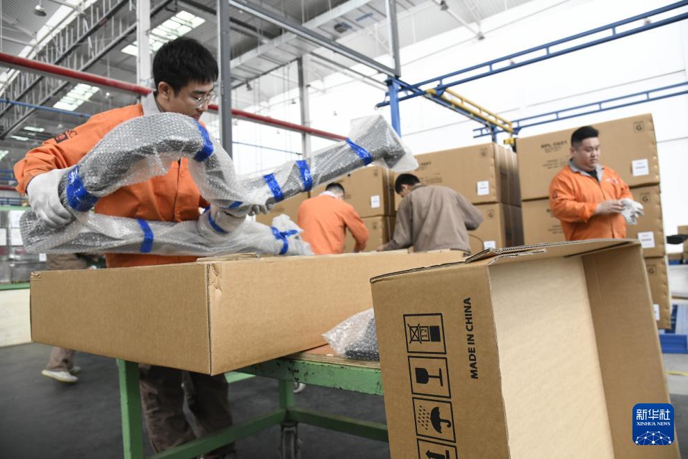 4月22日,青島英派斯健康科技股份有限公司員工在對出口產(chǎn)品進行抽檢。