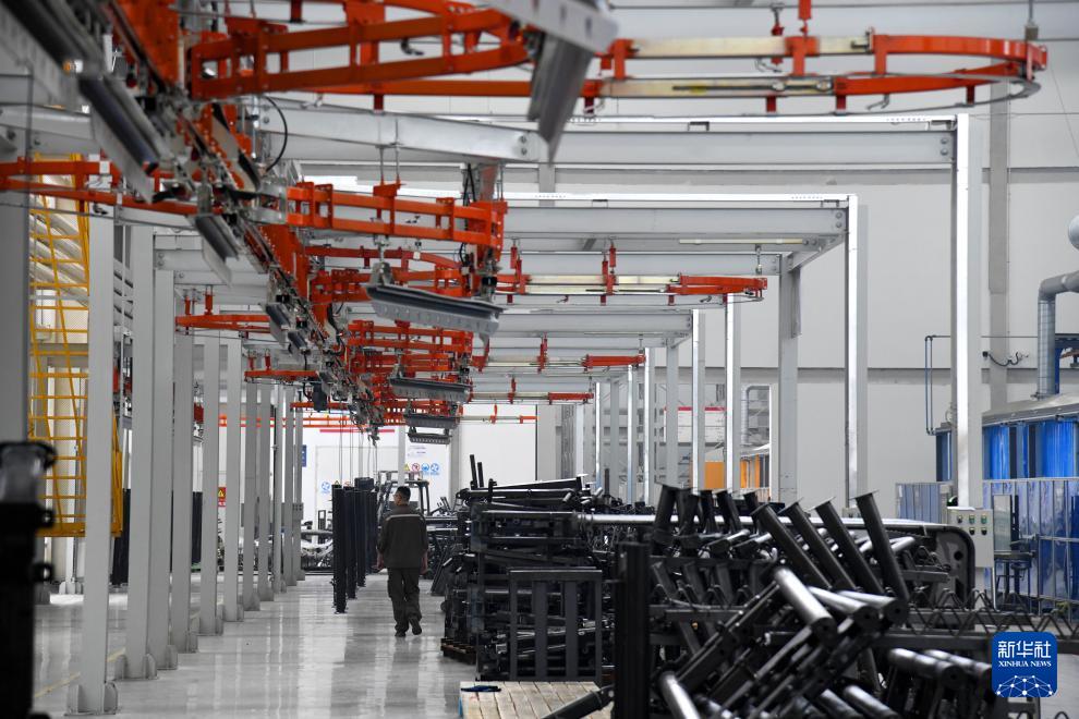 遍布青島英派斯健康科技股份有限公司智慧工廠內(nèi)的自動(dòng)傳輸設(shè)備(4月22日攝)。