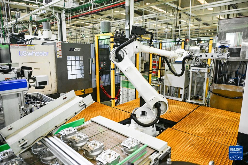 這是5月9日在位于北碚區(qū)的重慶順多利機(jī)車有限責(zé)任公司精工基地拍攝的自動化生產(chǎn)作業(yè)現(xiàn)場。