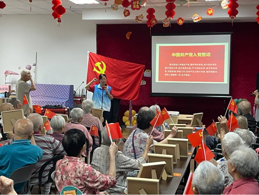 ●銘記光輝,汲取力量:活動伊始,全體黨員和長者們共同觀看了精心準備的黨史短片。短片濃縮了黨波瀾壯闊的104年奮斗歷程,展現(xiàn)了共產黨人矢志不渝的初心使命和改天換地的偉大成就。在黨史光輝的映照下,大家共同追憶崢嶸歲月,感悟信仰力量,為后續(xù)環(huán)節(jié)奠定了深厚的情感與思想基礎。