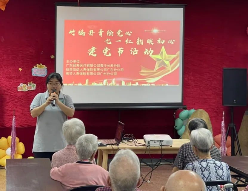 為熱烈慶祝中國共產黨建黨104周年,弘揚尊老敬老傳統(tǒng)美德,踐行金融為民初心,7月1日下午,橫琴人壽廣州黨支部及廣州分公司,聯(lián)合公益合作伙伴招商信諾廣東分公司,共同走進頤壽安養(yǎng)養(yǎng)老院,開展了一場主題鮮明、情意濃濃的“竹編丹青繪黨心,七一紅韻映初心”建黨紀念日主題活動暨“7.8全國保險公眾宣傳日”活動,以公益服務與紅色教育相結合的特殊方式為黨的生日獻禮。
