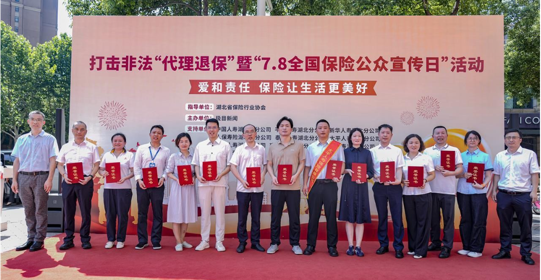 活動(dòng)現(xiàn)場(chǎng),大家人壽湖北分公司代表與12家金融機(jī)構(gòu)代表聯(lián)合發(fā)起倡議,鄭重宣讀《打擊非法代理退保承諾書》,展現(xiàn)行業(yè)堅(jiān)決打擊非法“代理退?!焙诨耶a(chǎn)的決心。國(guó)家金融監(jiān)督管理總局湖北監(jiān)管局、湖北省保險(xiǎn)行業(yè)協(xié)會(huì)和極目新聞相關(guān)領(lǐng)導(dǎo)共同為現(xiàn)場(chǎng)保險(xiǎn)公司頒發(fā)“打擊非法‘代理退?!蠕h單位”榮譽(yù)證書,倡議行業(yè)助力保險(xiǎn)消費(fèi)者守護(hù)好“錢袋子”。