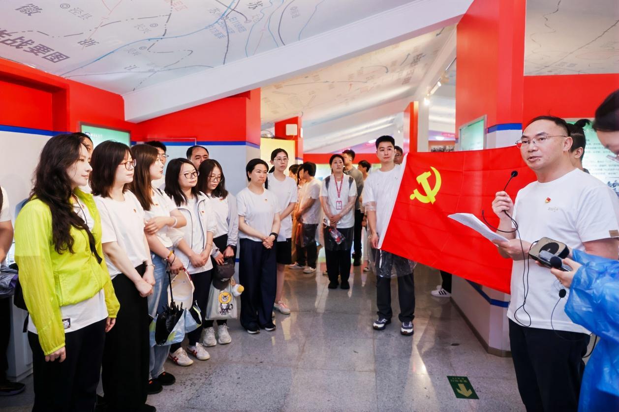 在新四軍將士名錄前,密密麻麻的名字代表著一個(gè)個(gè)曾經(jīng)鮮活的個(gè)體,他們無論是將軍、還是士兵,無論是沖鋒陷陣的指戰(zhàn)員、還是其他戰(zhàn)線上的人員,都懷有忠誠于黨、報(bào)效祖國、熱愛人民的赤膽忠心,都是中華民族的優(yōu)秀兒女。全體黨員共同緬懷英雄,面向黨旗,緊握右拳,重溫入黨誓詞。