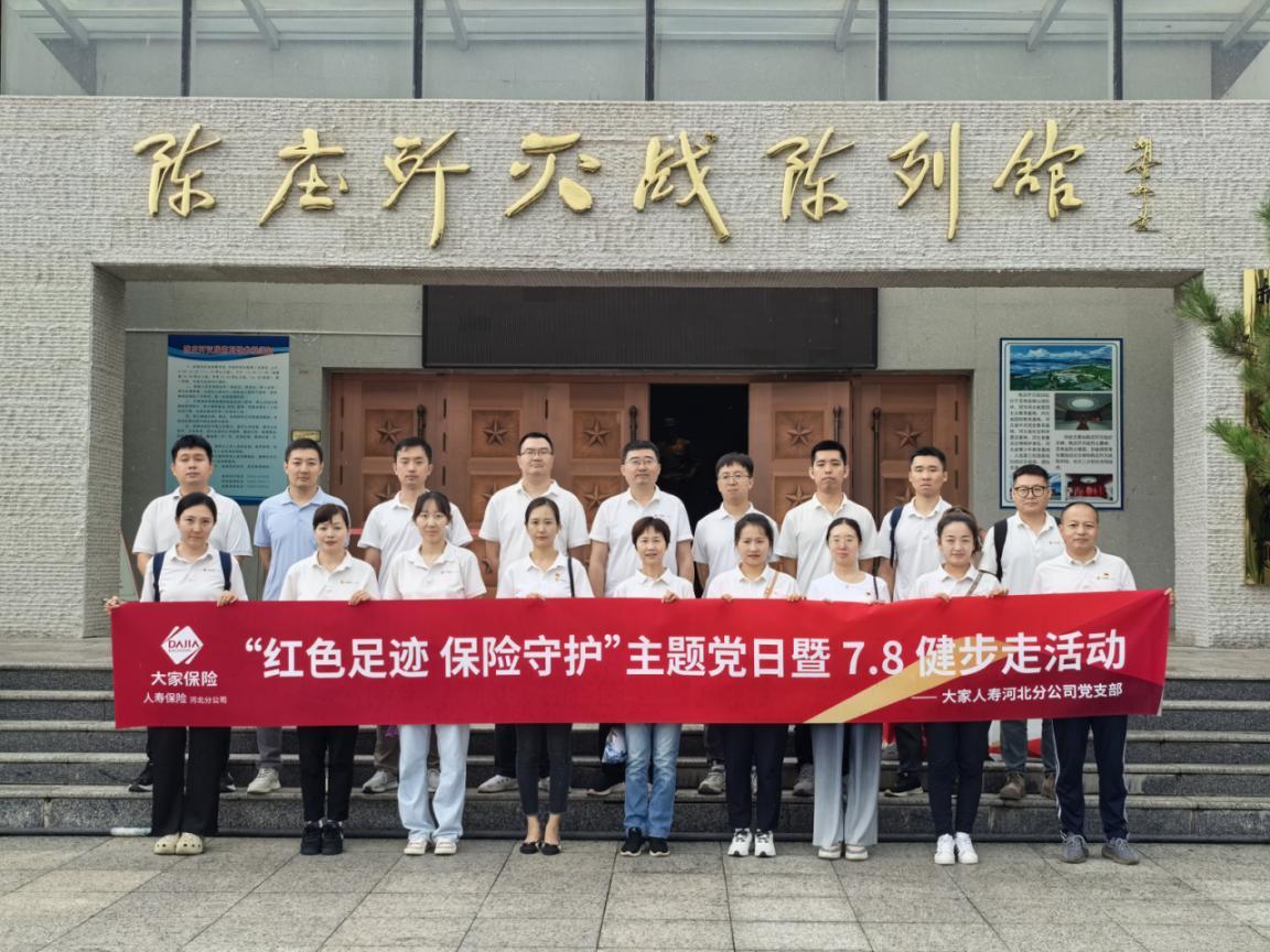 7月10日,大家人壽河北分公司黨支部組織本級(jí)及石家莊中支黨員、入黨積極分子,赴靈壽縣陳莊殲滅戰(zhàn)陳列館開展“紅色足跡 保險(xiǎn)守護(hù)”主題黨日暨7.8健步走活動(dòng),慶祝建黨104周年和抗戰(zhàn)勝利80周年,落實(shí)“7.8全國(guó)保險(xiǎn)公眾宣傳日”活動(dòng)要求。