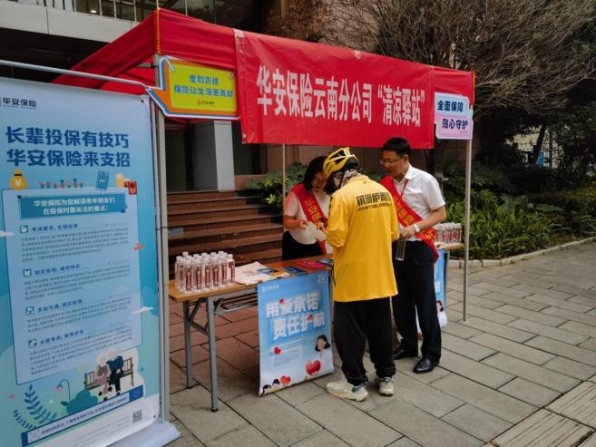 在昆明,華安保險云南分公司積極開展保險知識“進社區(qū)”活動,在公司所在社區(qū)設(shè)立保險“清涼驛站”,為社區(qū)群眾、新市民群體贈送瓶裝水和防暑降溫用品,并有針對性地開展保險知識宣傳和風(fēng)險提示,幫助消費者了解保險銷售業(yè)務(wù)常見的風(fēng)險點和易受誤導(dǎo)的環(huán)節(jié),客觀認知、準(zhǔn)確理解保險功能作用。
