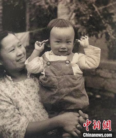 母親抱著林天民“揪耳朵”的抓拍照?!∈茉L者供圖
