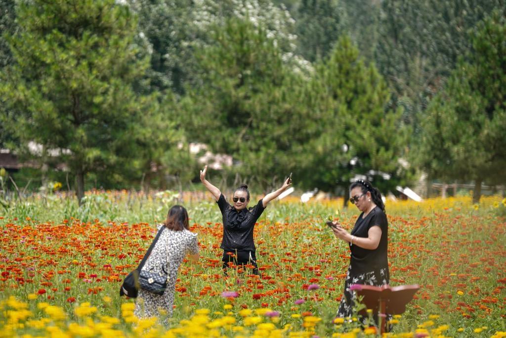 游客在南泥灣國(guó)家濕地公園內(nèi)游玩(7月29日攝)。新華社記者 樊雨晴 攝