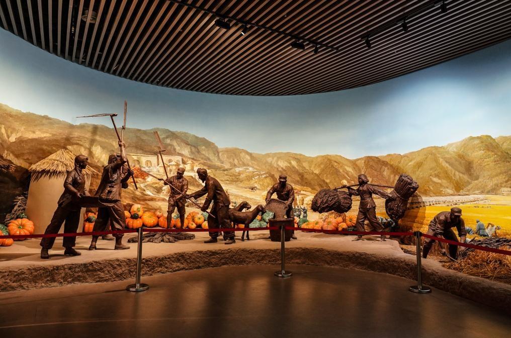 這是南泥灣大生產(chǎn)紀(jì)念館內(nèi)的雕塑作品(7月29日攝)。新華社記者 樊雨晴 攝