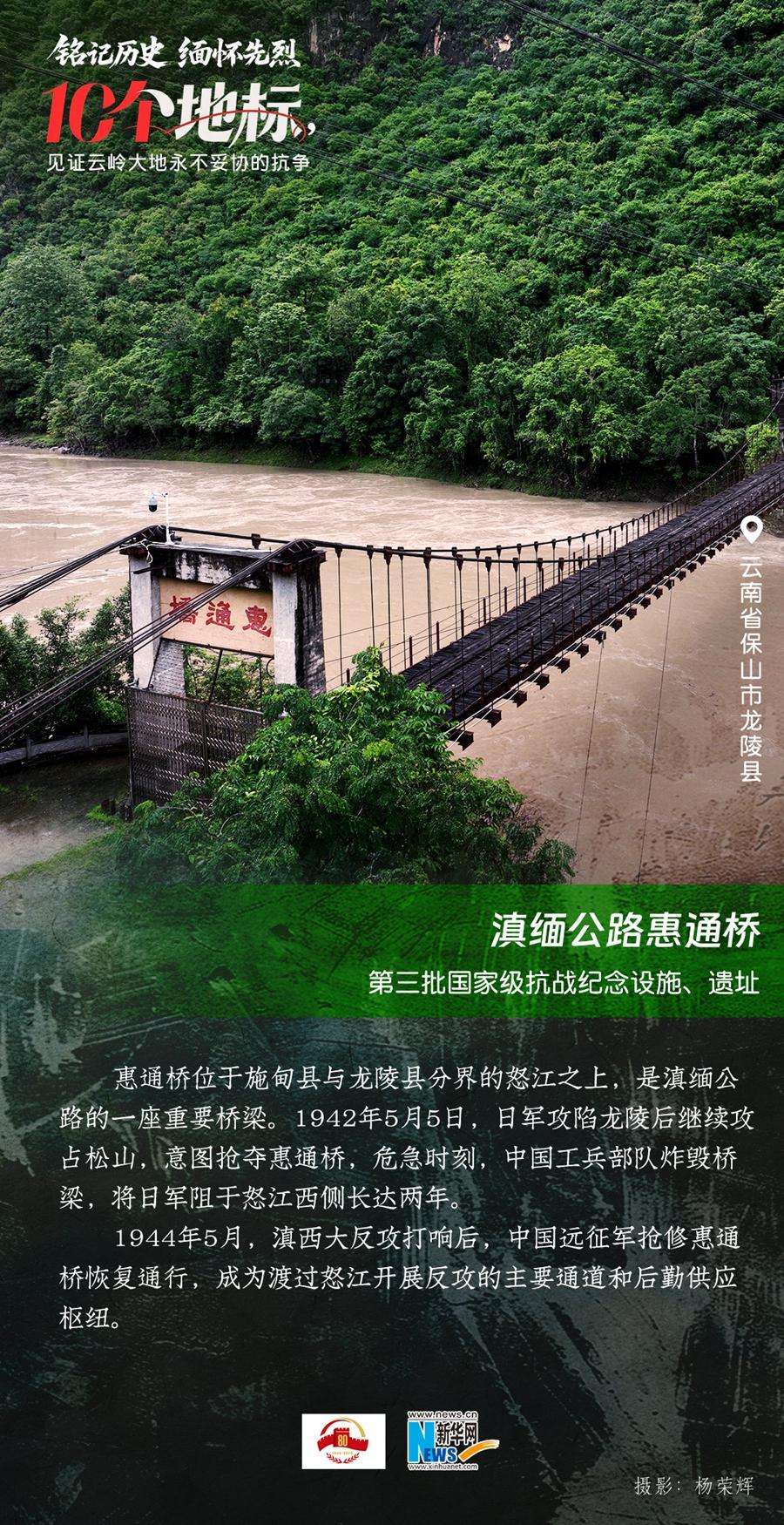 80年過去,曾經(jīng)的戰(zhàn)場硝煙雖散,但英氣永存。在國務(wù)院公布的前三批國家級抗戰(zhàn)紀(jì)念設(shè)施、遺址名錄中,云南省共有10個,分別為騰沖國殤墓園、騰沖滇西抗戰(zhàn)紀(jì)念館,龍陵抗日戰(zhàn)爭紀(jì)念館,國立西南聯(lián)合大學(xué)舊址,抗戰(zhàn)勝利紀(jì)念堂,松山戰(zhàn)役舊址,南洋華僑機(jī)工回國抗日紀(jì)念碑,怒江駝峰航線紀(jì)念館,施甸縣抗日江防遺跡群,滇緬公路惠通橋,滇西抗日戰(zhàn)爭紀(jì)念碑。它們承載著國人共同的歷史記憶與民族情感,也為我們學(xué)習(xí)和傳承抗戰(zhàn)精神提供了現(xiàn)實(shí)條件。