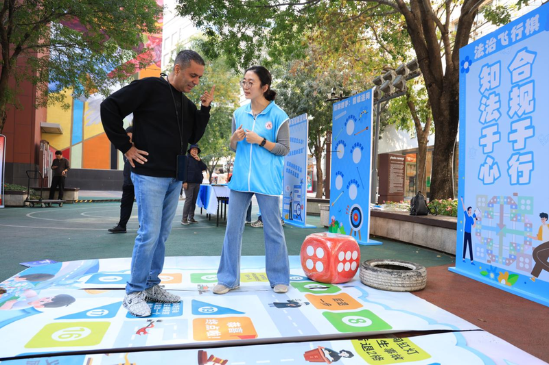 外籍居民參與“法治飛行棋”互動。王遠(yuǎn)征 攝