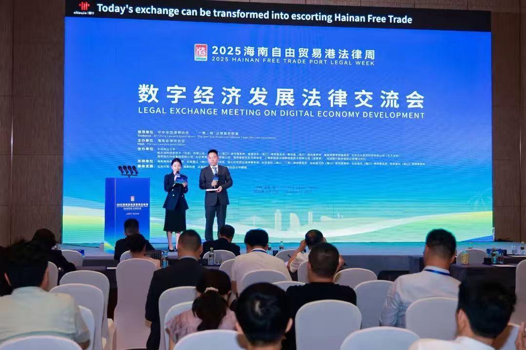 10月17日,2025海南自由貿(mào)易港法律周重要活動之“數(shù)字經(jīng)濟發(fā)展法律交流會”在??谂e行。本次交流會聚焦數(shù)字經(jīng)濟浪潮下的法治保障議題,匯聚了學(xué)術(shù)界、法律實務(wù)界與國際相關(guān)領(lǐng)域?qū)<?,從全球視野到地方實踐,從技術(shù)賦能到法治保障,共同為海南自貿(mào)港數(shù)字經(jīng)濟的創(chuàng)新發(fā)展建言獻(xiàn)策。