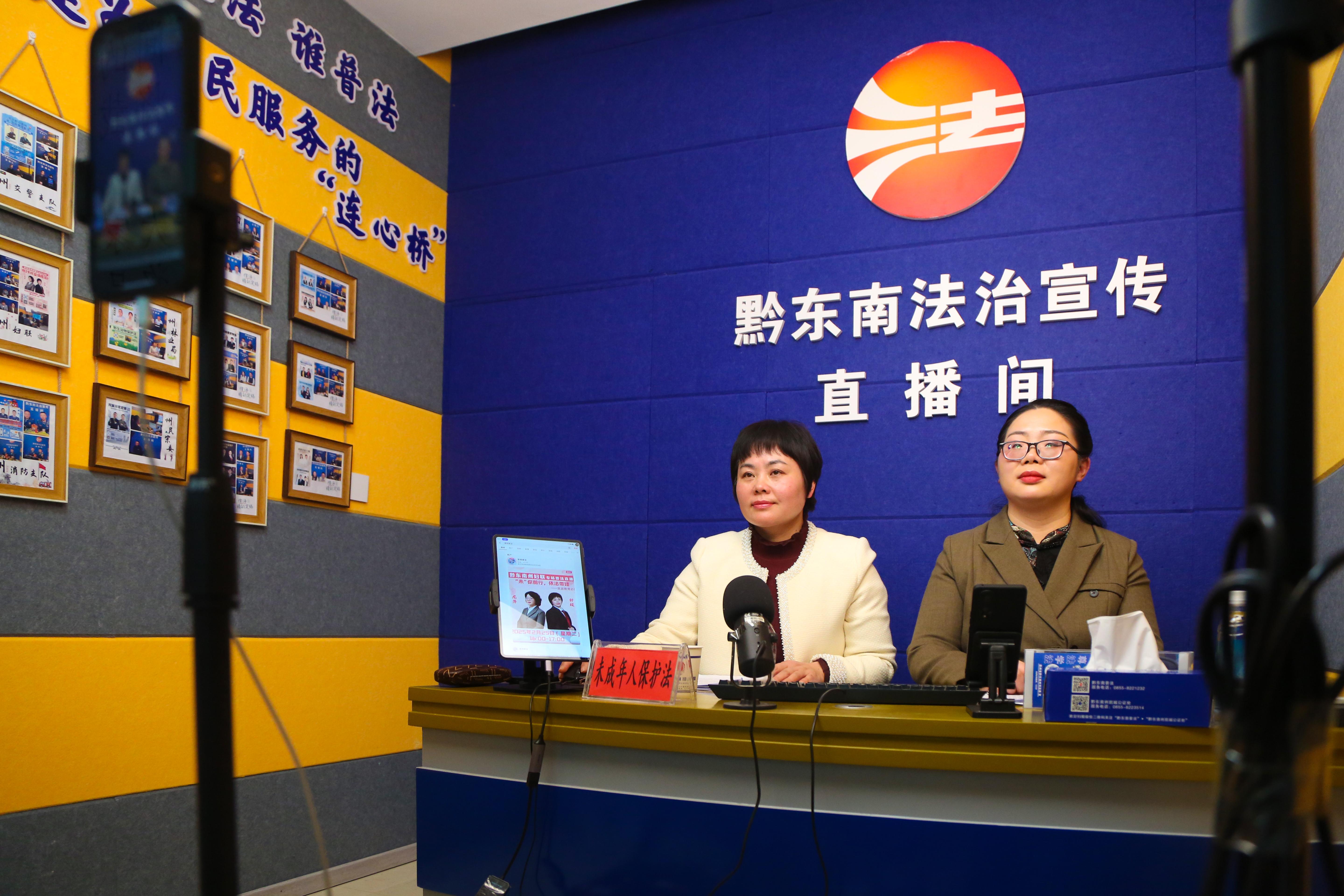 圖為2月25日,法治副校長(zhǎng)團(tuán)隊(duì)成員到黔東南法治宣傳直播間向網(wǎng)民普及未成年人保護(hù)法。
