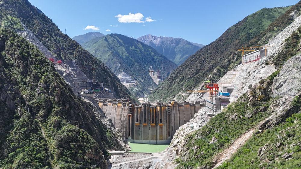 建設(shè)中的葉巴灘水電站(2025年6月30日攝,無人機(jī)照片)。該水電站地處四川甘孜州白玉縣與西藏昌都市貢覺縣交界處的金沙江上游。新華社發(fā)(陳浩 攝)