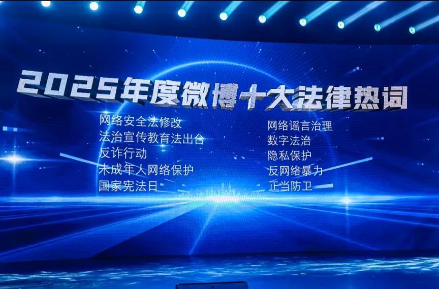 活動(dòng)現(xiàn)場(chǎng)還發(fā)布了“2025年度微博十大法律熱詞”,分別是:網(wǎng)絡(luò)安全法修改、網(wǎng)絡(luò)謠言治理、法治宣傳教育法出臺(tái)、數(shù)字法治、反詐行動(dòng)、隱私保護(hù)、未成年人網(wǎng)絡(luò)保護(hù)、反網(wǎng)絡(luò)暴力、國(guó)家憲法日、正當(dāng)防衛(wèi)。