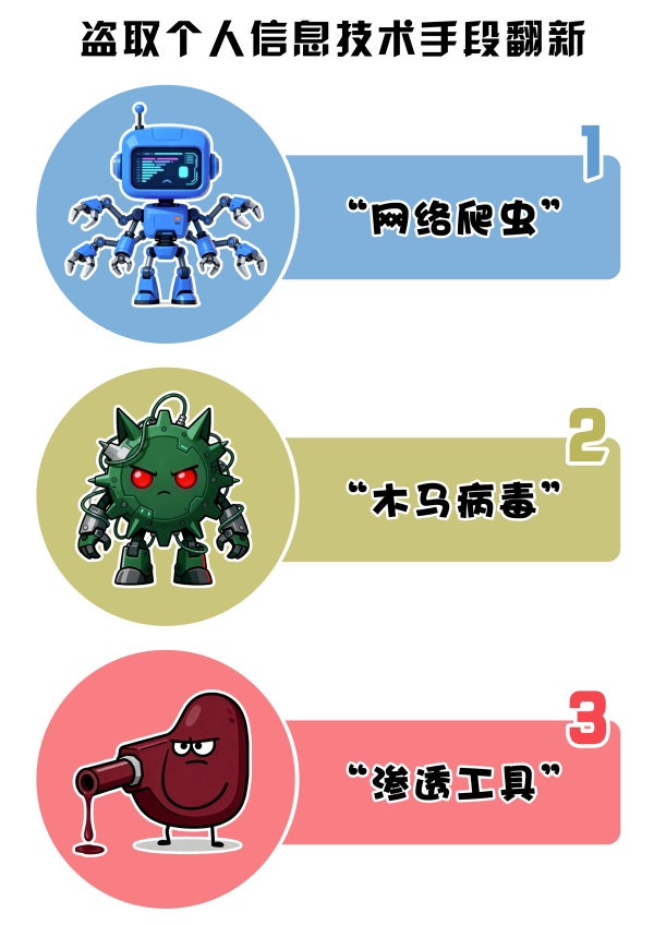 如今,不法分子犯罪手段持續(xù)翻新,不僅推出獲取公民個人信息的“定制化服務”,更是利用網(wǎng)絡爬蟲、木馬病毒、滲透工具等新型技術(shù),大肆竊取數(shù)據(jù),給公民日常生活帶來困擾,也埋下了信息安全隱患。