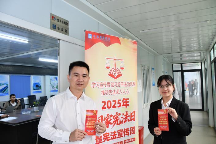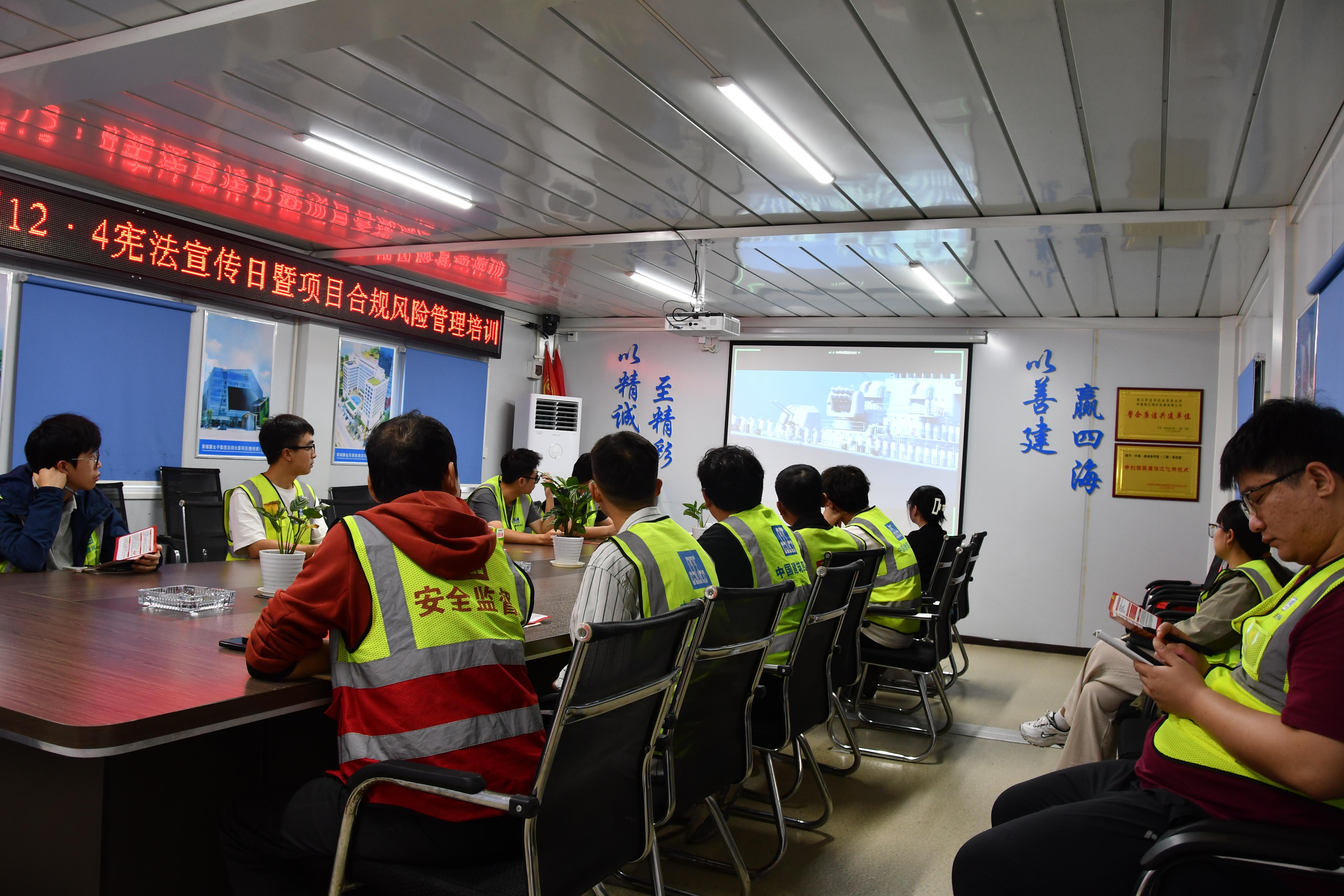當(dāng)天是我國(guó)第12個(gè)國(guó)家憲法日,中國(guó)建筑第四工程局有限公司海南分公司法務(wù)部緊扣“‘憲’啟封關(guān)路 法潤(rùn)自貿(mào)港”宣傳主題,將法治課堂搬到施工一線,為近100名建設(shè)者送上了一堂“聽(tīng)得懂、用得上”的憲法普法課。
