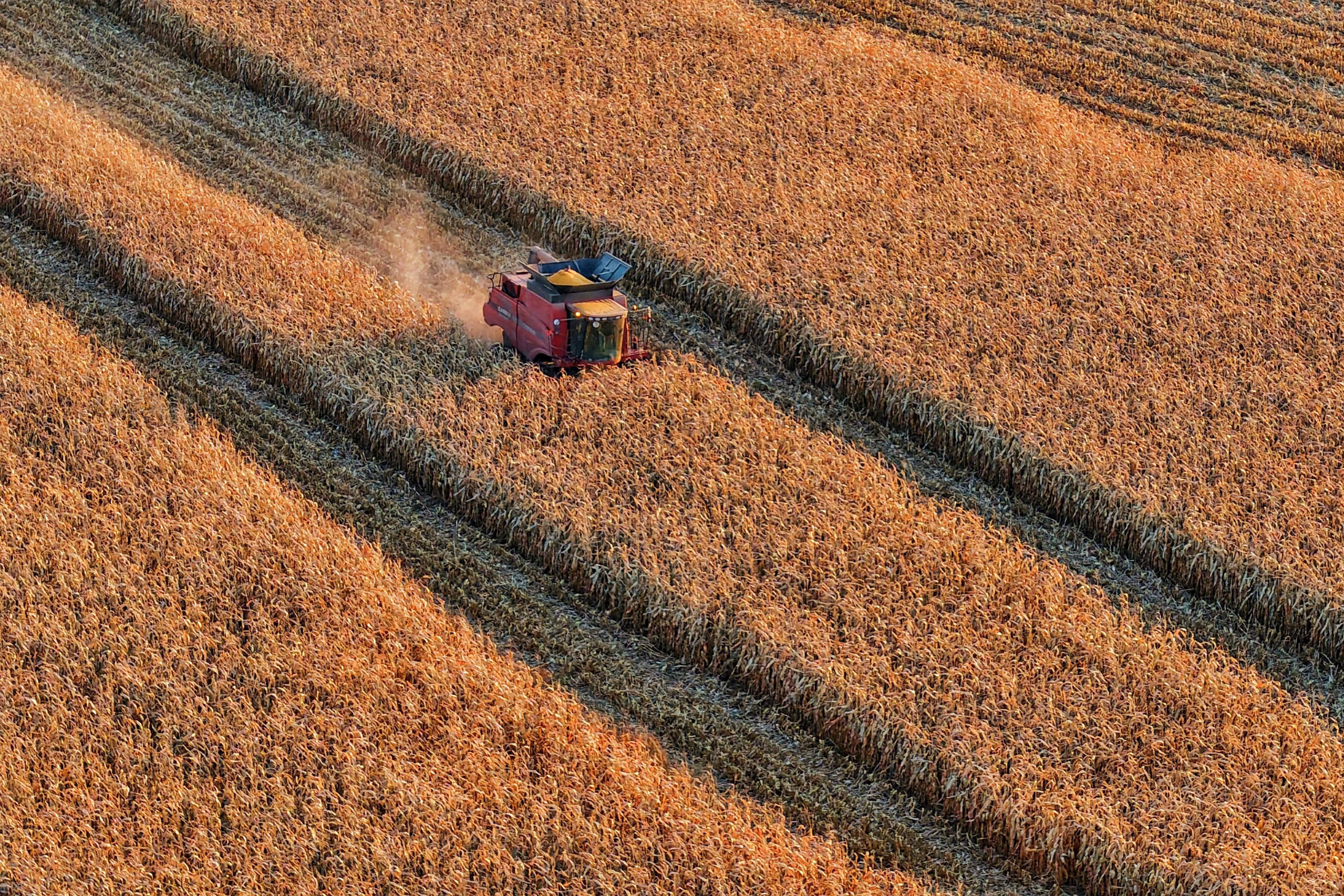 2025年10月14日,在黑龍江同江市街津口赫哲族鄉(xiāng),農(nóng)戶在收獲玉米(無人機照片)。新華社發(fā)(劉萬平攝)