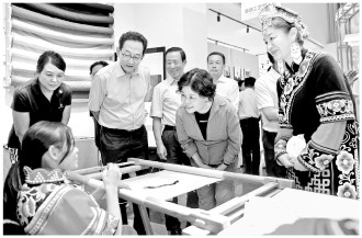全國人大常委會非物質(zhì)文化遺產(chǎn)法執(zhí)法檢查組在云南楚雄彝繡數(shù)字文化產(chǎn)業(yè)園彝繡產(chǎn)品交易中心進(jìn)行實地檢查。