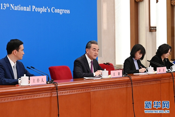 3月7日,十三屆全國人大四次會議在北京人民大會堂新聞發(fā)布廳舉行記者會,邀請國務委員兼外交部長王毅就“中國外交政策和對外關系”相關問題回答中外記者提問。為有效防控疫情,共同維護公共衛(wèi)生與健康,記者會采用網(wǎng)絡視頻形式進行。 新華社記者 陳曄華 攝