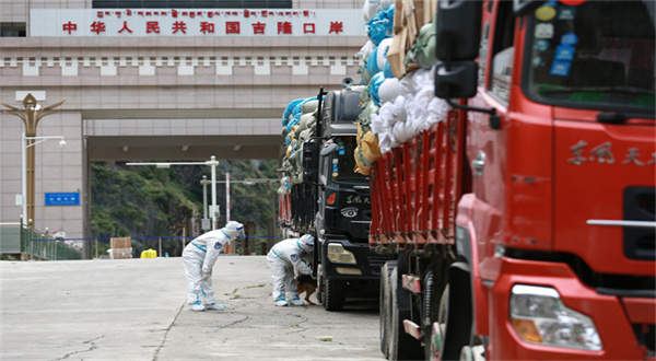 隨著吉隆口岸外貿(mào)企業(yè)復(fù)工復(fù)產(chǎn),口岸逐步恢復(fù)了昔日繁忙景象。連日來,一輛輛載滿貨物的貨車經(jīng)吉隆出入境邊防檢查站執(zhí)勤移民管理警察全面檢查,完成查驗手續(xù)辦理后,順利有序通關(guān)。