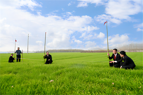 徐州市銅山區(qū)法院干警正在現(xiàn)場丈量確定農(nóng)田四至,精準查清案件事實,妥善、高效化解涉農(nóng)糾紛。