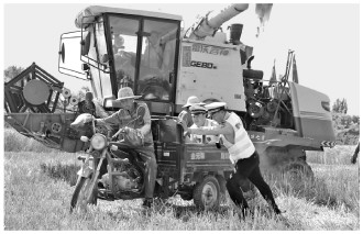 陜西渭南澄城縣交警大隊(duì)民警協(xié)助村民搶收小麥