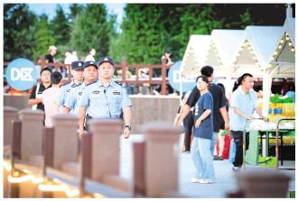7月18日晚,2023烏巾蕩啤酒龍蝦節(jié)在江蘇大公園(興化)正式開幕,現(xiàn)場1040個座位座無虛席。為了守護夏日煙火氣,護航本地夏日經(jīng)濟,興化市公安局提前謀劃周密部署,每日出動警力150余人次,以“定人、定崗、定責”工作原則,確?;顒影踩行蜻M行。圖為執(zhí)勤警力在現(xiàn)場巡邏。
