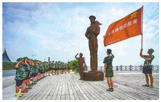 參加山東省青島市青少年軍事夏令營(yíng)的孩子們?cè)诤\姽珗@同心筑夢(mèng)廣場(chǎng)集合。 劉瑋 攝